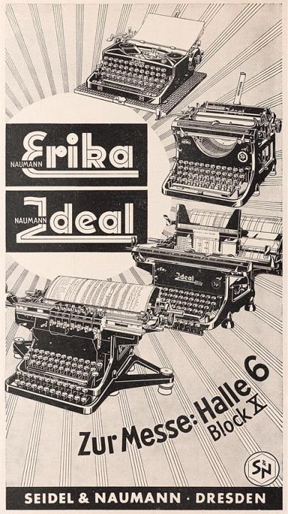 Werbeanzeige für Schreibmaschinen Erika und Ideal monochrom