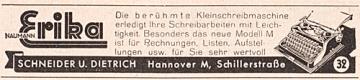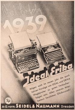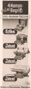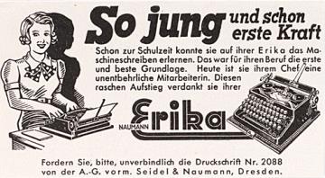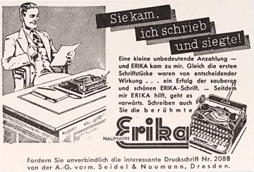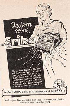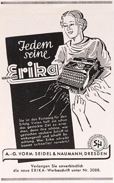 Werbeanzeige für Schreibmaschinen Erika und Ideal monochrom