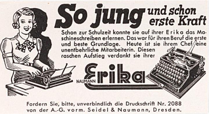Werbeanzeige für Schreibmaschine Erika monochrom