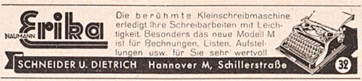 Werbeanzeige für Schreibmaschine Erika monochrom