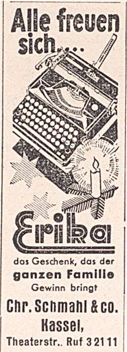 Werbeanzeige für Schreibmaschine Erika monochrom