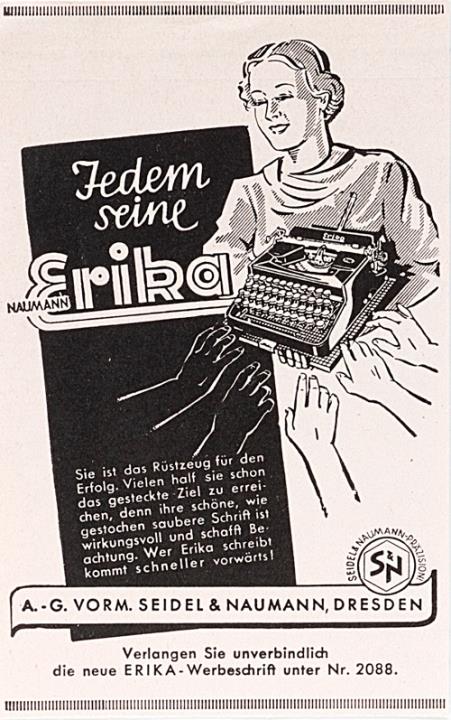 Werbeanzeige für Schreibmaschine Erika monochrom
