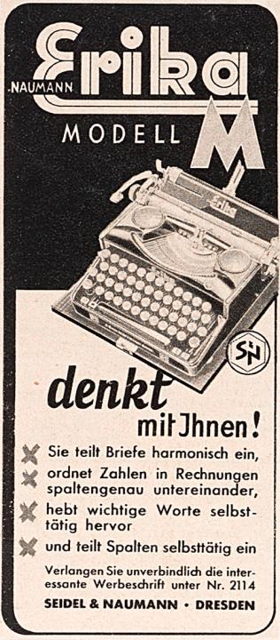 Werbeanzeige für Schreibmaschine Erika M monochrom
