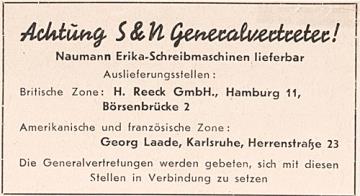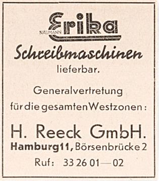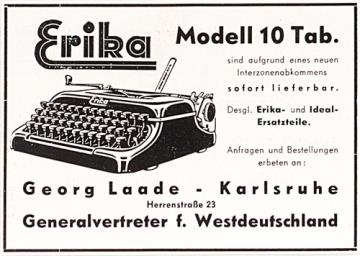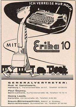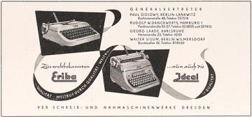 Werbeanzeige für Schreibmaschinen Erika und Ideal monochrom