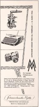 Werbeanzeige für Feinmechanik-Optik Deutscher Innen- und Aussenhandel monochrom