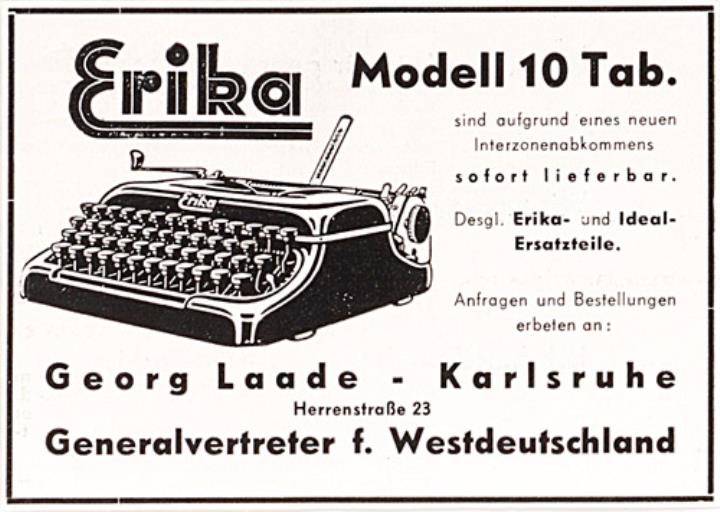Werbeanzeige für Schreibmaschine Erika polychrom