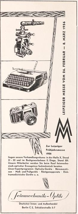 Werbeanzeige für Feinmechanik-Optik Deutscher Innen- und Außenhandel monochrom