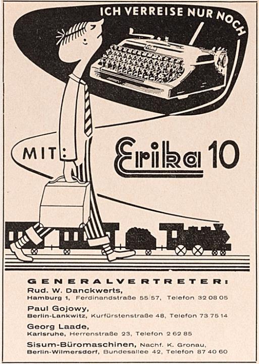 Werbeanzeige für Schreibmaschine Erika 10 monochrom