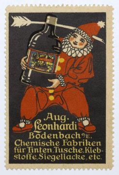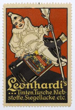 Reklamemarke/Werbemarke für Schreibwarenhersteller Leonhardi; rechteckig, polychrom