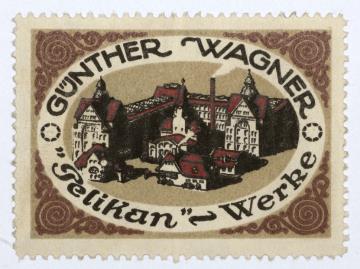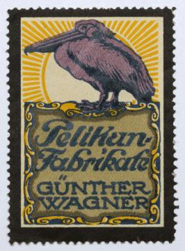 Reklamemarke/Werbemarke für Schreibwarenhersteller G. Wagner (Pelikan) rechteckig, polychrom