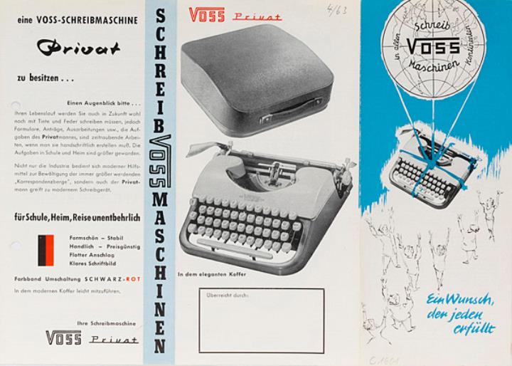 Bedienungsanleitung für Schreibmaschine Voss Privat Ein Wunsch, der jeden erfüllt Jahreszahl handschriftlich auf Prospekt vermerkt