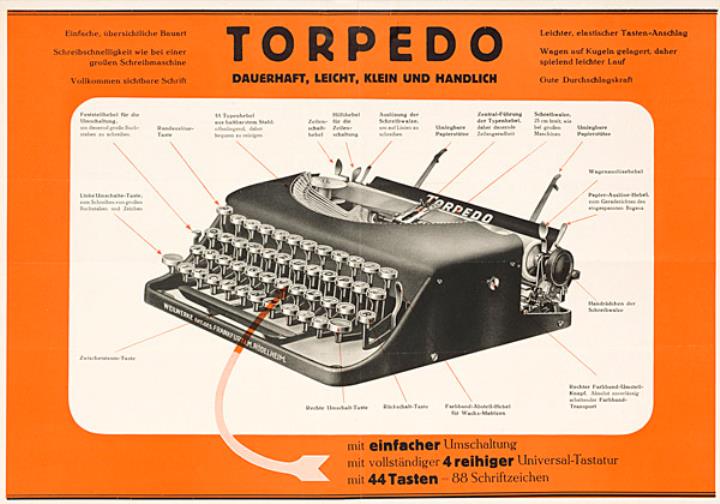 Faltprospekt für Schreibmaschine Torpedo Nr. 10013.14.6.27.