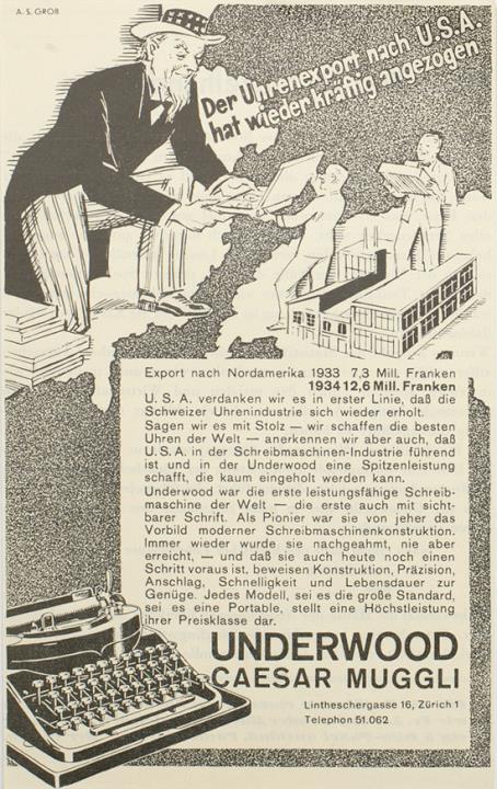 Werbeanzeige für Schreibmaschine Underwood monochrom