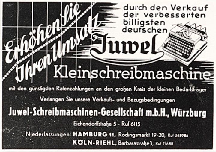 Werbeanzeige für Schreibmaschine Juwel monochrom
