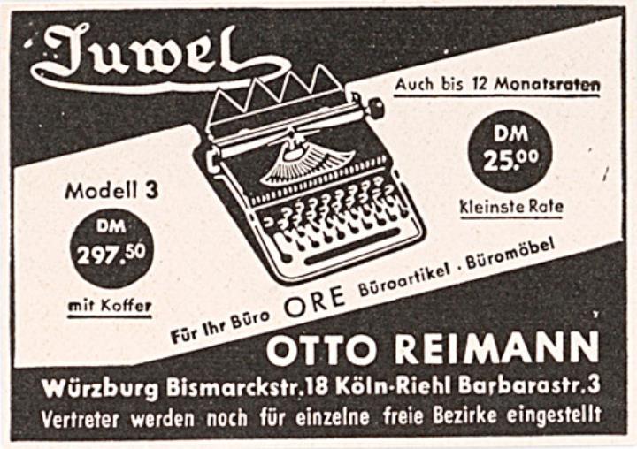 Werbeanzeige für Schreibmaschine Juwel monochrom