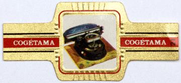 Zigarrenbanderole einer Serie (Cogétama); polychrom Nr. 21/24. Zeigerschreibmaschine Geniatus, 1924