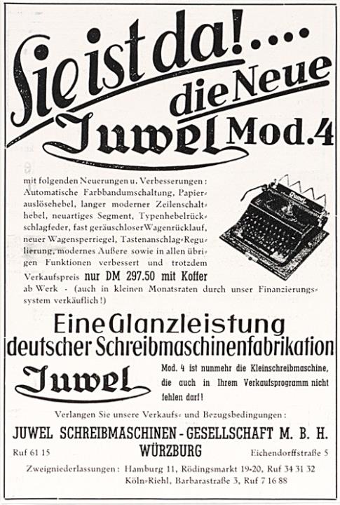 Werbeanzeige für Schreibmaschine Juwel monochrom