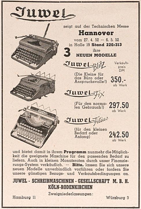 Werbeanzeige für Schreibmaschine Juwel monochrom