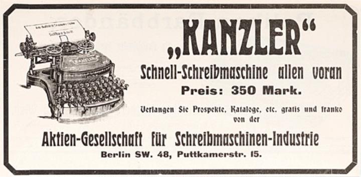 Werbeanzeige für Schreibmaschine Kanzler monochrom