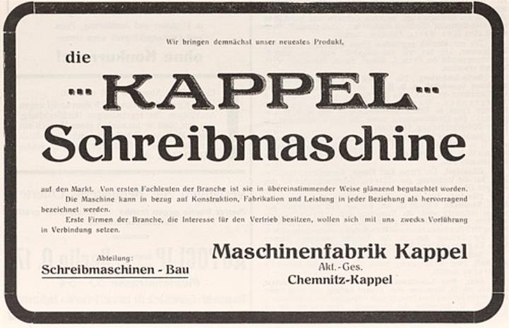 Werbeanzeige für Schreibmaschine Kappel monochrom