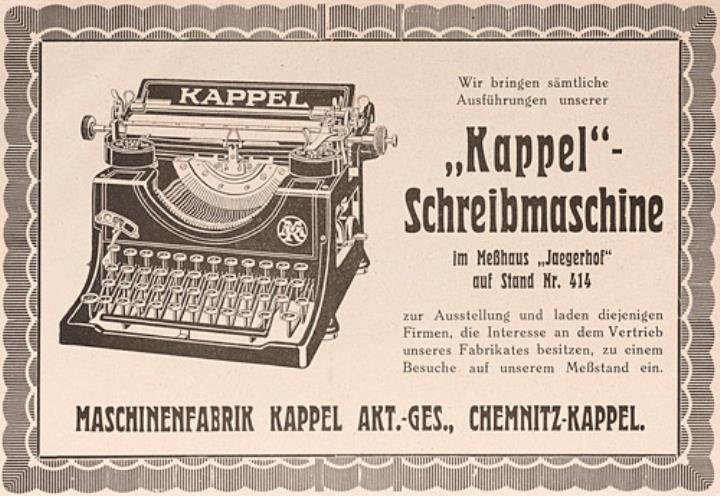 Werbeanzeige für Schreibmaschine Kappel monochrom