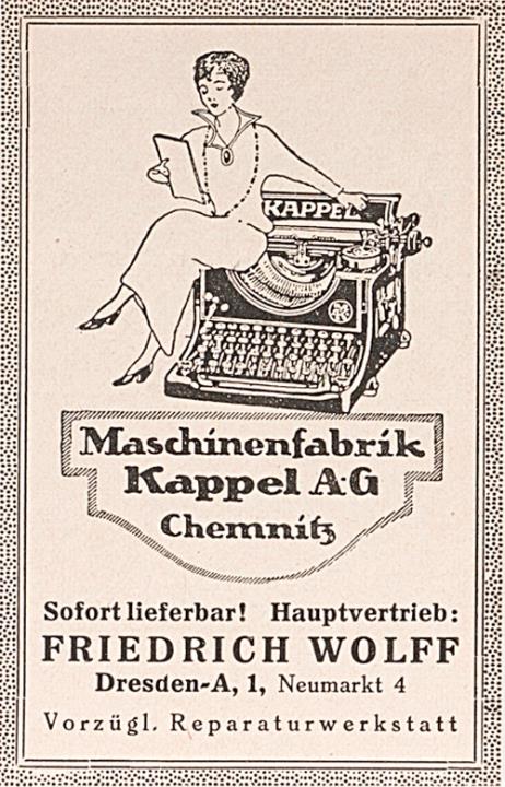 Werbeanzeige für Schreibmaschine Kappel monochrom