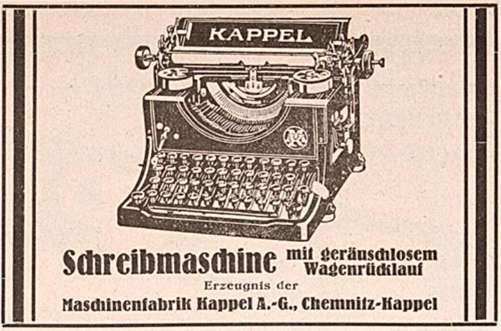 Werbeanzeige für Schreibmaschine Kappel monochrom