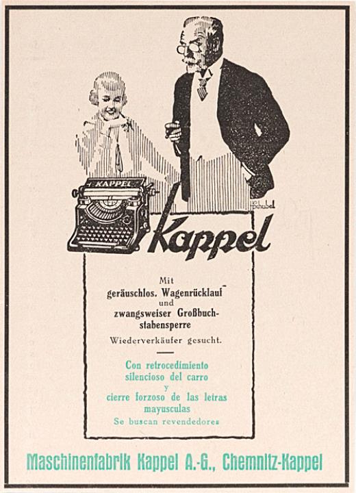 Werbeanzeige für Schreibmaschine Kappel polychrom