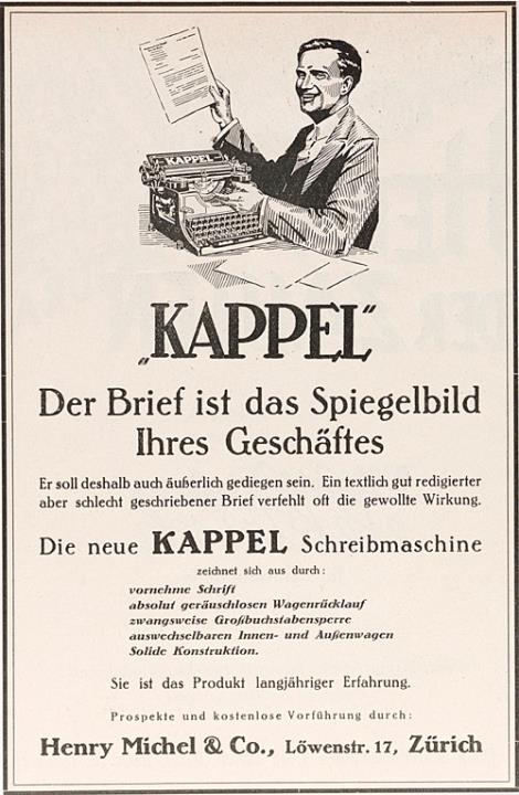 Werbeanzeige für Schreibmaschine Kappel monochrom