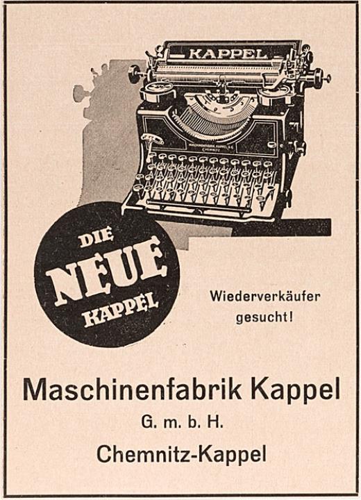Werbeanzeige für Schreibmaschine Kappel monochrom