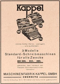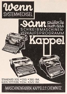 Werbeanzeige für Schreibmaschinen Kappel monochrom