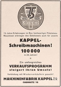 Kappel-Schreibmaschinen! 100 000 in 23 Jahren!