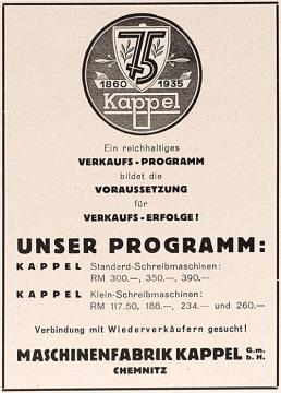 Werbeanzeige für Schreibmaschine Kappel monochrom