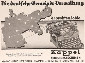 Die deutsche Gemeinde-Verwaltung erprobte u. lobte Kappel Schreibmaschinen
