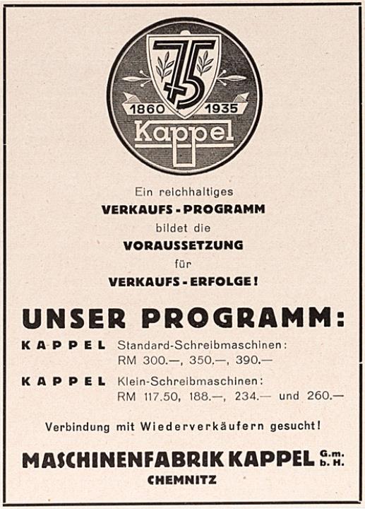 Werbeanzeige für Schreibmaschinen Kappel monochrom