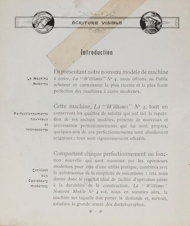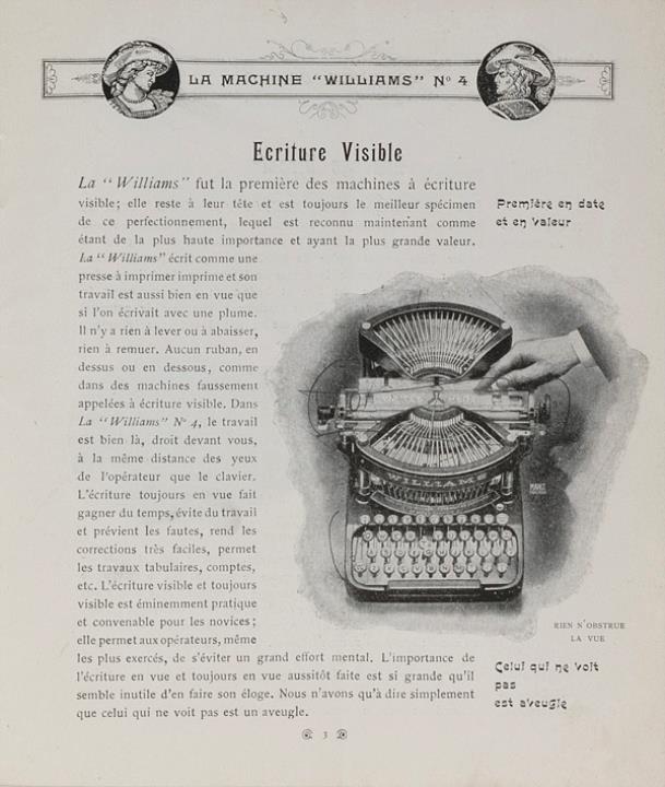 Prospekt in französischer Sprache für Schreibmaschine Williams 4