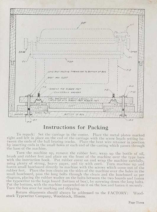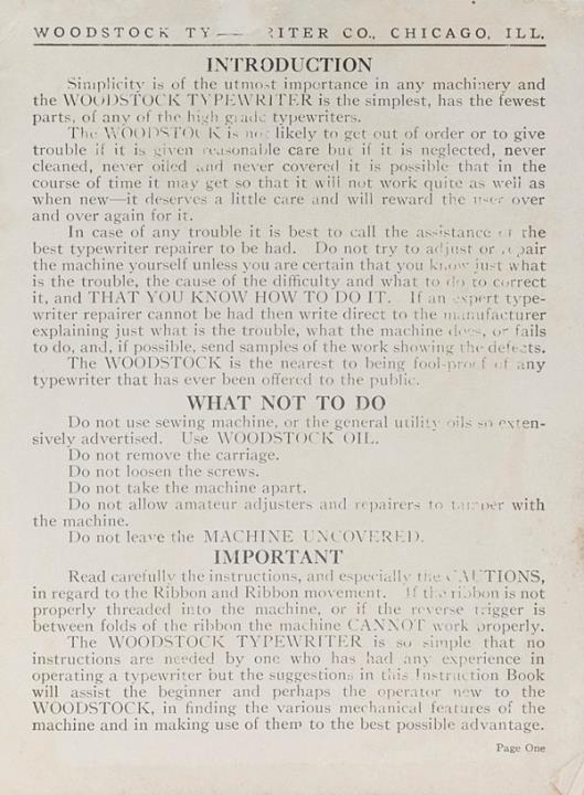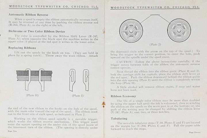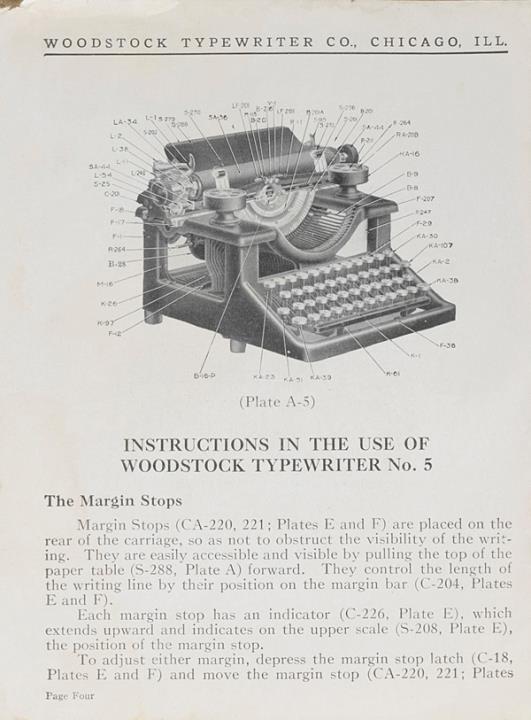Bedienungsanleitung für Schreibmaschine Woodstock 5 Nr. 105 6M 7-20, zwei Exemplare (eines fotokopiert, gebunden)