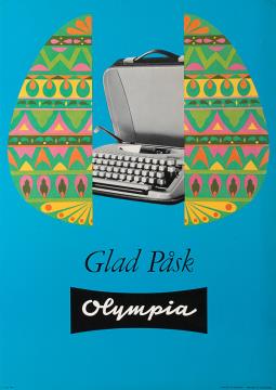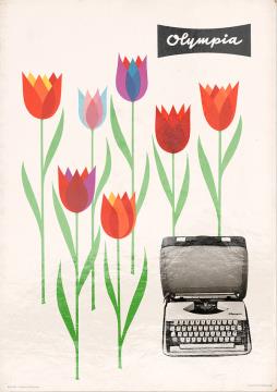 Werbeschild; Aufsteller aus Pappkarton für Schreibmaschine Olympia Nr. N6/11/341/00/C polychrom