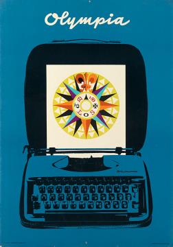 Werbeschild; Aufsteller aus Pappkarton für Schreibmaschine Olympia Nr. N6/11/342/00 polychrom