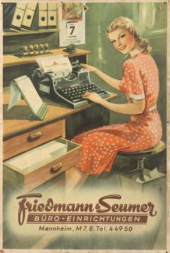 Next to literature on the history of technology, of the typewriter and the office, the Archive holds patent letters, textbooks and instruction manuals as well as historical postcards, letters, photographs and various kinds of advertising (leaflets and brochures, advertising stamps, newspaper ads, posters and signs, promotional gifts).