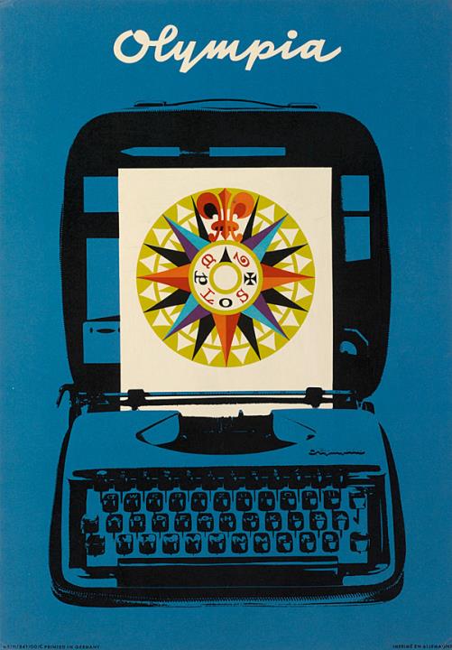 Werbeschild; Aufsteller aus Pappkarton für Schreibmaschine Olympia Nr. N6/11/341/00/C polychrom