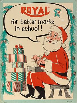 Werbeschild; Aufsteller aus Pappkarton für Schreibmaschine Royal Motiv: Weihnachtsmann; polychrom Nr. P2A-5127