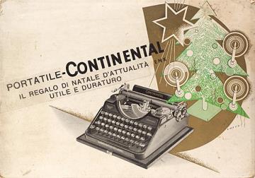 Werbeschild; Aufsteller aus Pappkarton für Schreibmaschine Continental polychrom, Grafik: Amann; Weihnachtsmotiv