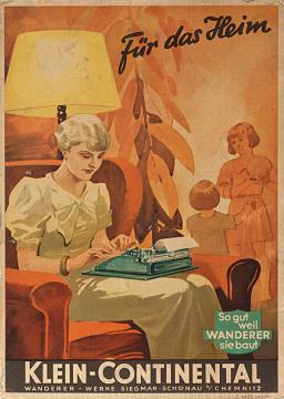 Werbeschild; Aufsteller aus Pappkarton für Schreibmaschine Klein-Continental Nr. C 6443 (4375) polychrom