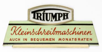 Werbeschild; Aufsteller aus Pappkarton für Schreibmaschine Triumph polychrom