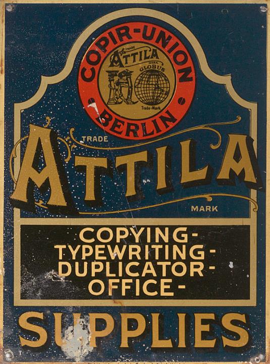 Werbeschild aus Metall für Bürowaren Attila polychrom