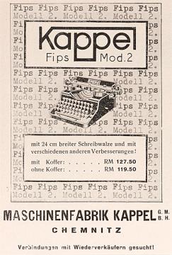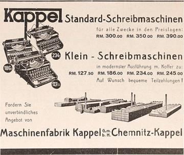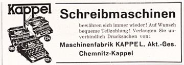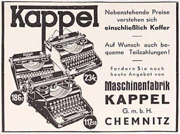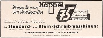 Werbeanzeige für Schreibmaschine Kappel monochrom
