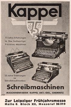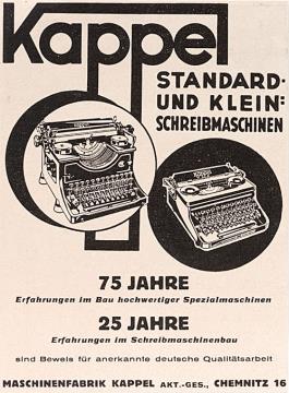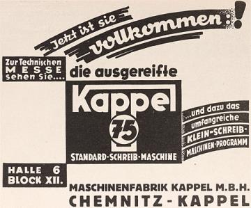 Werbeanzeige für Schreibmaschine Kappel 75 monochrom