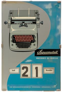 Dauerkalender/Drehkalender mit Werbeaufdruck für Schreibmaschine Supermetall