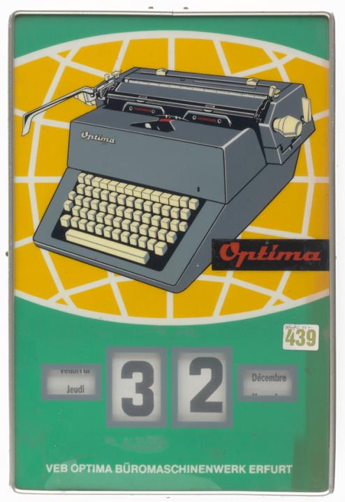 Dauerkalender/Drehkalender mit Werbeaufdruck für Schreibmaschine Optima